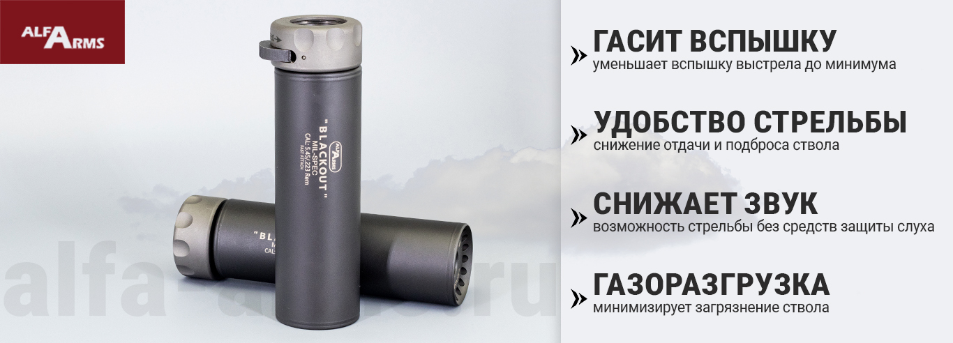Быстросъемный газоразгруженный ДТКП закрытого типа Alfa Arms Blackout, кал.5,45/223Rem разработан специально для использования в армейских и полицейских спецподразделениях. Газоразгруженная конструкция существенно минимизирует обратный заброс пороховых газов — это снижает риск их попадания в органы зрения и дыхания стрелка, обеспечивая комфорт и безопасность при активной стрельбе.