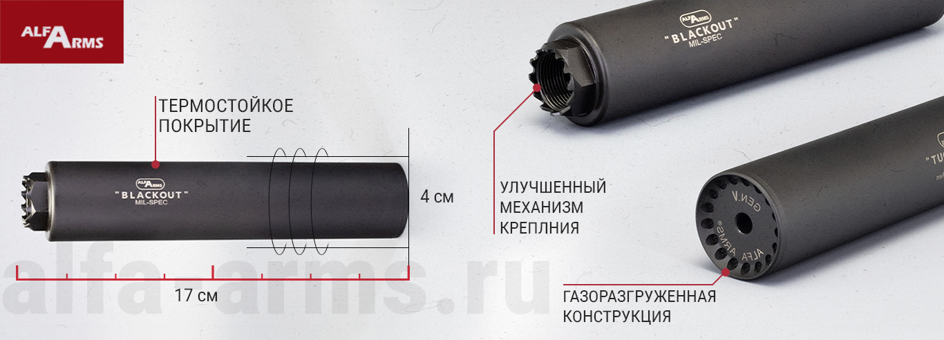 Дульные устройства Alfa Arms снижают подброс ствола, а также уменьшают демаскирующие факторы: