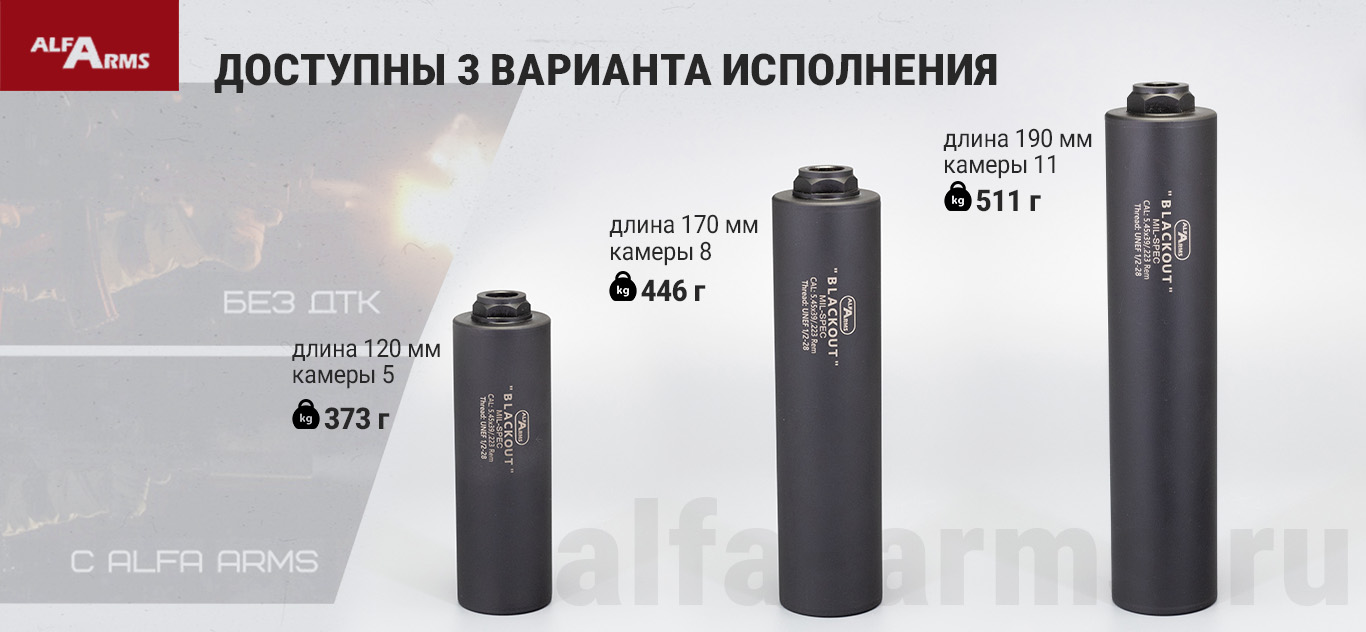 Дульные устройства Alfa Arms снижают подброс ствола, а также уменьшают демаскирующие факторы: