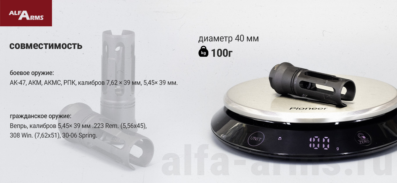 Вы можете купить пламегаситель Alfa Arms на АКМ/РПК/Вепрь (М14х1LH) в нашем магазине по самой выгодной цене.